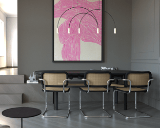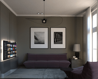 Ein Bereich zum abspielen und lagern von Schallplatten lädt zum Entspannen und Musik hören ein.Die gesamte Inneneinrichtung des Schlafzimmers ist minimalistisch und aufgeräumt, was zu einer beruhigenden und entspannten Atmosphäre beiträgt.Die Kombination aus modernen Möbeln, sanften Farben und hochwertigen Materialien schafft einen Raum, der zum Ausruhen und Entspannen einlädt.
